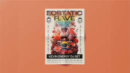 The overall identity feels like movement, gritty and chaotic in its roots, yet calming and emotionally resonant. It’s a visual balance of rebellion and ritual, nostalgia and intention. Ecstatic Rave creates space for both connection and release, and the branding was designed to reflect that journey. Take a look at their Instagram to find out more about their events.