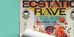 Ecstatic Rave poster design and brand identity honours the nostalgia and visual chaos of classic rave culture while weaving in softness, symbolism and spiritual undertones.
