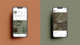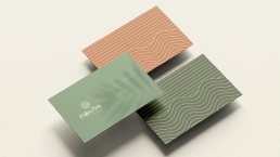 A warm colour palette of green, burnt orange and beige was chosen to evoke calm, connection and warmth, while a flowing serif font adds a sense of professionalism and approachability, mirroring the brand’s down-to-earth personality.